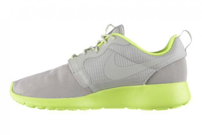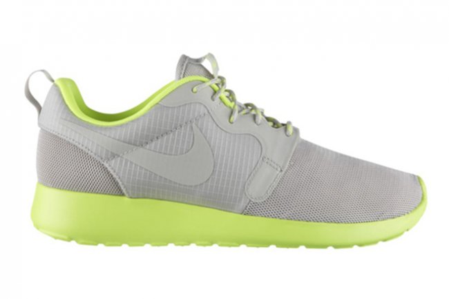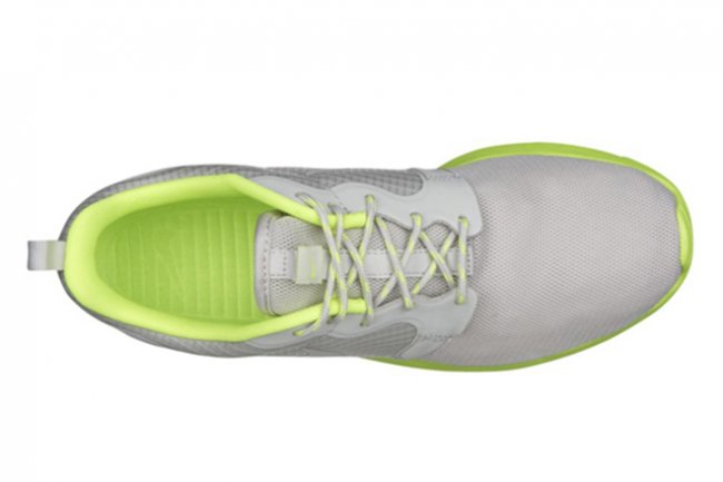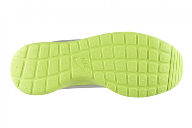 Nike 的 Roshe Run 系列在它的外形以及价钱上深受大众欢迎,精緻的设计,舒适的足感给了鞋迷们无法抗拒的理由。而这次所推出的女款 Roshe Run 在鞋身上利用灰色的尼龙物料,配上萤光绿的内靴和鞋底,为眼睛带来了强烈的颜色对比,可见得 Nike 不论在手工还是配色上都花了不少心血。