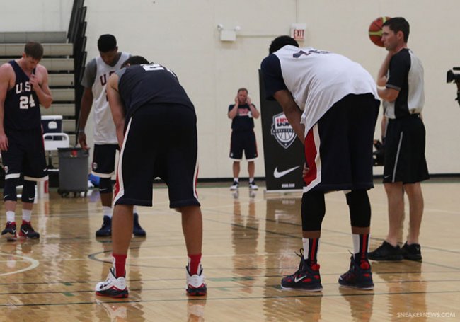 Anthony Davis 慢慢成为新一代美国队的中流砥柱,跟以往力量型的内线球员不太相同,新生代的选手有着更加灵巧的身手来主宰禁区。而 Anthony Davis 在美国队训练期间替我们率先曝光了 Nike Hyperposite 2 ‘USA’,虽然正式名称尚未确定,但从外观看来可发现原有的 Posite 材质设计为更多的篓空状,一方面减轻重量,一方面透过菱格状来建构出鞋面的支撑性。而原有的全脚掌 Max 气垫也改为 Zoom Max,预计将能提供大个子球员更佳的缓冲效应。