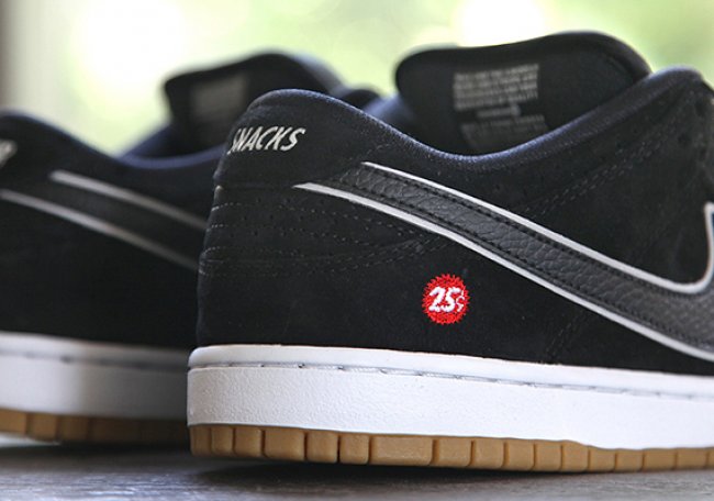 Nike SB此次携手纽约著名滑板杂志Quartersnacks送上全新联名Nike SB Dunk Low。黑色麂皮鞋身搭配白色中底与生胶大底,反光银细节点缀鞋身之上增加亮点,鞋舌使用防撕裂尼龙制造。鞋舌、鞋垫及后跟鞋侧处均刺绣有25¢ Logo,后跟处则刺绣有Quarter、Snacks字样。据悉,这款Quartersnacks x Nike SB Dunk Low Premium 现已确定将于本周末正式上市,售价:98美元。