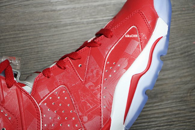 Air Jordan 6 SLAM DUNK 再度于网络上曝出全新实物细节图,这款以《灌篮高手》作为设计灵感的Air Jordan 6 以红色作为主色调,并搭配白红中底与水晶大底。3M反光鞋面上印制有樱木花道等出现在《灌篮高手》漫画中的形象,搭配后跟的10号刺绣细节与鞋款整体的红白主题,让人很容易就想到那位高呼“我是天才”的湘北10号——樱木花道。 货号:717302-600 发售日期:待定