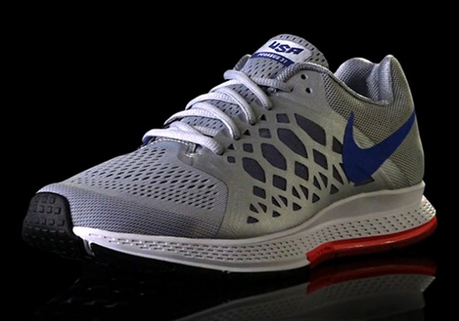 Nike的经典跑鞋“飞马”系列近日推出了两款“美国田径协会”别注配色,银灰色配蓝或红组成双色鞋面,鞋舌处绣有“USA”及“Pegasus 31”的字眼,整双鞋子的“美国”气味很重。在同时发售的两款配色上均设有男女款,目前鞋款可以有“USATF”线上商城购得,售价100美元。