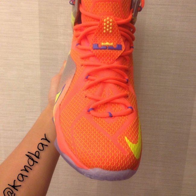詹姆斯的新款战靴已经确定将在 10 月底正式发售,除了已经曝光的多款配色,现在又有新色亮相。 眼前这款 LeBron 12 Sample 样品采用了橙色的编织鞋面,辅以荧光色和蓝色细节。 相关信息: LeBron 12 “Lion Heart” 高清实物展示 LeBron 12 “Data” 新配色曝光 LeBron 12 "Instinct" 高清实物图赏