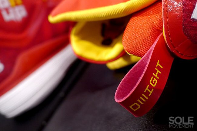 虽然有句俗话叫中锋不卖鞋,但adidas依旧在新赛季开始前为”魔兽“Dwight Howard准备了他的第五双adidas 签名鞋——adidas D Howard 5 。这款全新鞋款使用火箭配色打造,红色鞋身搭配白色中底,黄色点缀在内衬、大底等处,整体充满了火箭风格,红白黄的配色则让人想到了火箭标志性的复古球服。而后跟Dwight Howard个人Logo、鞋舌上的扣篮超人剪影、鞋舌上的Dwight Howard个人签名、12号背号、鞋舌内的乐高人偶、鞋垫上印制的Howard头像等细节则令这双adidas D Howard 5充满了魔兽的个人元素。