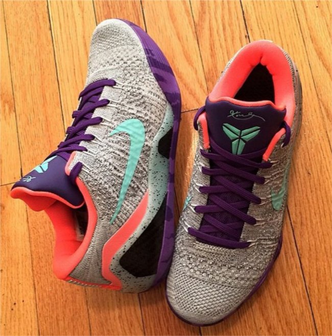 EYBL 是 Nike Basketball 举办的 Nike 青年精英篮球联赛,日前网络上便曝光了一款 Nike 为此项赛事打造的 Kobe 9 Elite Low EYBL “Peach Jam” 配色。鞋款以灰色 Flyknit 鞋身为基底,搭配上紫色的鞋舌、鞋带以及外底,鞋身上的 Swoosh 以及鞋舌上的 Kobe 签名 Logo 则以水湖蓝色呈现。目前暂无该款配色的市售信息。