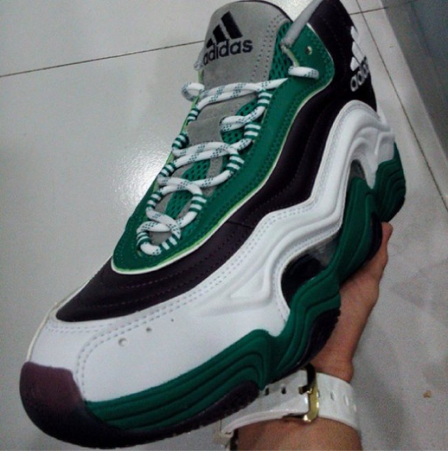 曾经专属小飞侠Kobe Brayant的adidas EQT KB8 II 现已adidas Crazy II的名称正式复刻归来,在陆续复刻了元年经典的黑/白/蓝及紫/白配色之后,adidas 似乎还将在近日为我们带来另外一款配色。白黑相间的鞋身搭配黑色外底,绿色中底与鞋舌装饰相互映衬,鞋款清新令人记忆深刻。