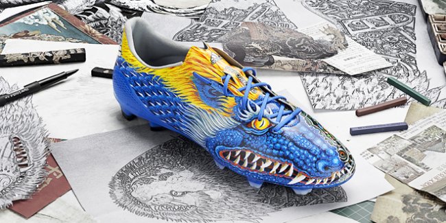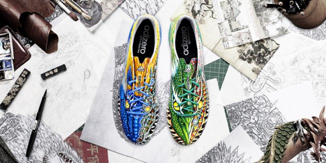 阿迪达斯今天公布了最新限量版山本耀司adizero f50战靴。去年推出的灵感源自守卫日本皇室的狛犬的山本耀司adizero f50战靴大获成功,最新的adizero f50战靴采用的蓝色与绿色设计,耀眼夺目。这种传统与日本现代科幻小说文化相结合,打造一种过去与未来精神连接的境界。