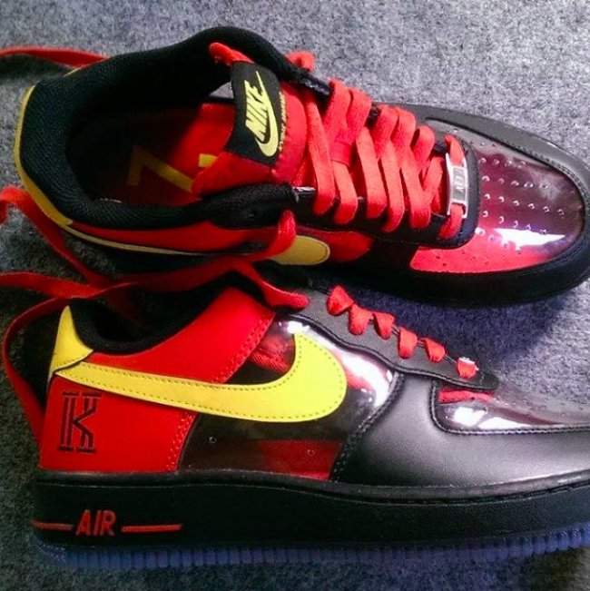 鉴于当前形势,Nike需要更多明星球员来扩展更大的篮球市场和影响力,Kyrie Irving或许就是其中之一。在为他打造了个人logo以及多双专属配色球鞋之后,网上又曝出了一双为他设计的Air Force 1 Low PE。鞋身选用红色搭配黑色辅以黄色点缀,鞋面以及鞋侧以透明材质呈现,后跟附有其个人logo,鞋款风格颇为特别。