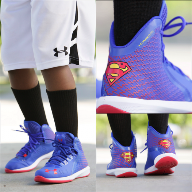 知名运动鞋零售商Finishline 在自己的网上商城中上架了一双充满趣味的GS版本Under Armour Torch 篮球鞋。这款专门为女生及孩童们准备的篮球鞋采用人气极高的DC漫画当家明星超人作为主题制作而成,蓝色鞋身搭配红色外底与白色中底,后跟鞋身采用蓝色配合红色的渐变设计,超人标志性的S Logo辅以后跟之上,整体造型十分出彩。