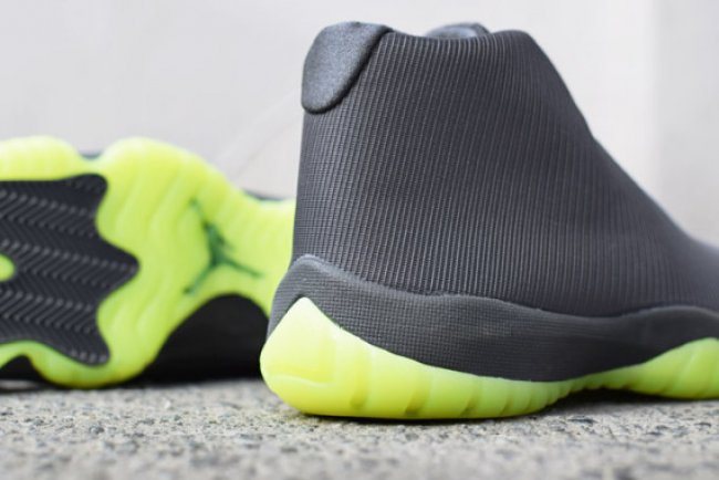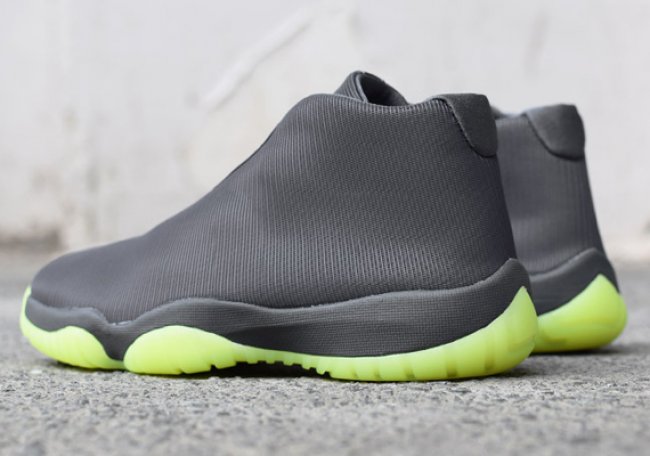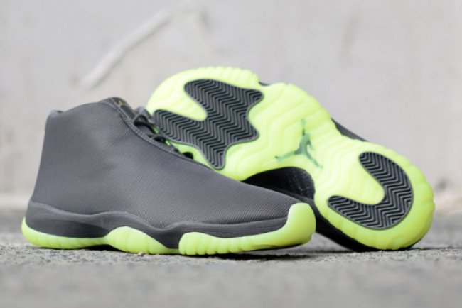 新兴型号 Jordan Future 新配色接连不断,明天,又有一款全新配色的 Jordan Future 即将在欧洲地区率先上架。鞋款以银黑色3M反光材质打造鞋身,搭配上苹果绿色的半透明水晶大底而成,极具未来感。