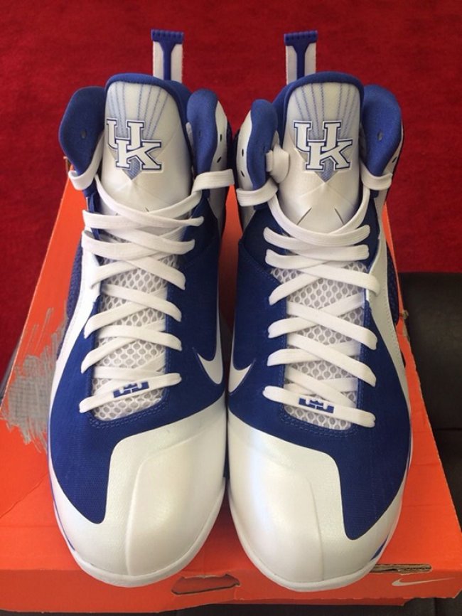 美国大学联赛除了有精彩的比赛之外,球员们脚上的专属球鞋也是一条风景线。近日eBay又出现一双Nike为肯塔基大学野猫队特别设计的LeBron 9 PE,白色鞋身搭配皇家蓝色细节,鞋舌附有UK logo,整体呈现主场主题。