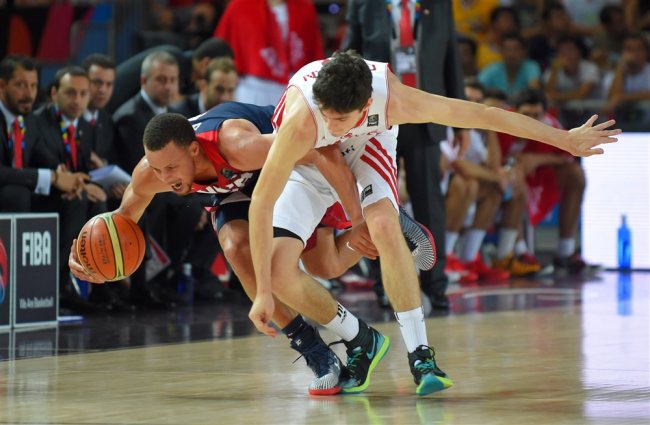 FIBA男篮世界杯已经开幕,现在将迎来第三比赛日,让我们回顾一下之前一天美国对土耳其、西班牙对埃及的比赛情况(美国逆转土耳其,98:77,迎来两连胜;西班牙,91:54,大胜埃及),浏览一下图片看看球员们和他们脚上的球鞋!