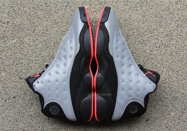 作为今年秋冬季首款将要登场的Air Jordan 13,这双采用“3M”反光材质的打造鞋面的鞋款,将于下月初与大家见面。整体采用灰色及黑色为基础色调,红色修饰细节部分,但是让原本低调的配色瞬间亮眼的则是那“3M”的反光鞋面。在最初释出谍照的时候已经让众多朋友无法淡定,随着市售日期的临近,相信会有更多的朋友喜欢上这双能反光的“熊猫”。. Air Jordan 13 “Reflective” 货号: 696298-023 预计发售日期: 10/04/14