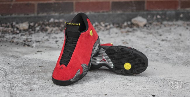 带来红色麂皮鞋面 Air Jordan 14 “Ferrari” 高清美图欣赏。 设计灵感来源于迈克尔乔丹喜爱的法拉利 550M 型跑车,此款配色采用火红的麂皮鞋面打造,质感十足。点缀金黄色细节,使得整体颇具视觉吸引力,碳纤维纹路的搭配则恰当好处,进一步衬托出速度与激情的碰撞。 货号:654459-670 发售日期:9 月 6 日 发售价格:$200