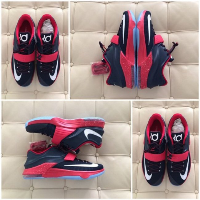 昨天,Nike 正式宣布匹配 UA 给杜兰特开出的报价,将这位新科 MVP 留在了自己旗下。为了庆祝阿杜留守,他的训练师,也是经常在 IG 上晒特别版 KD 战靴的 @rmbwilliams 此番又晒出了一双全新的 Nike KD7 PE。鞋款以黑红色为主调,辅以白色 Swoosh,目前暂时没有鞋款的具体信息。