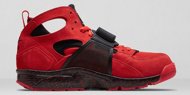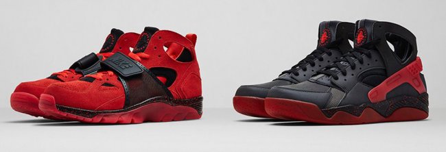 Nike正式发布包含Air Flight Huarache以及Air Trainer Huarache的“爱与恨”系列鞋款。Air Flight Huarache以黑色作为主色调,搭配无烟煤以及挑战红色细节,鞋身附上反光材质装饰,中底辅以红色泼墨点缀;Air Trainer Huarache以红色调呈现,鞋身选用红色麂皮物料制作,搭配黑色细节,中底同样附有红色泼墨点缀。“爱与恨”系列鞋款将于9月13日正式发售。