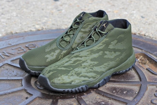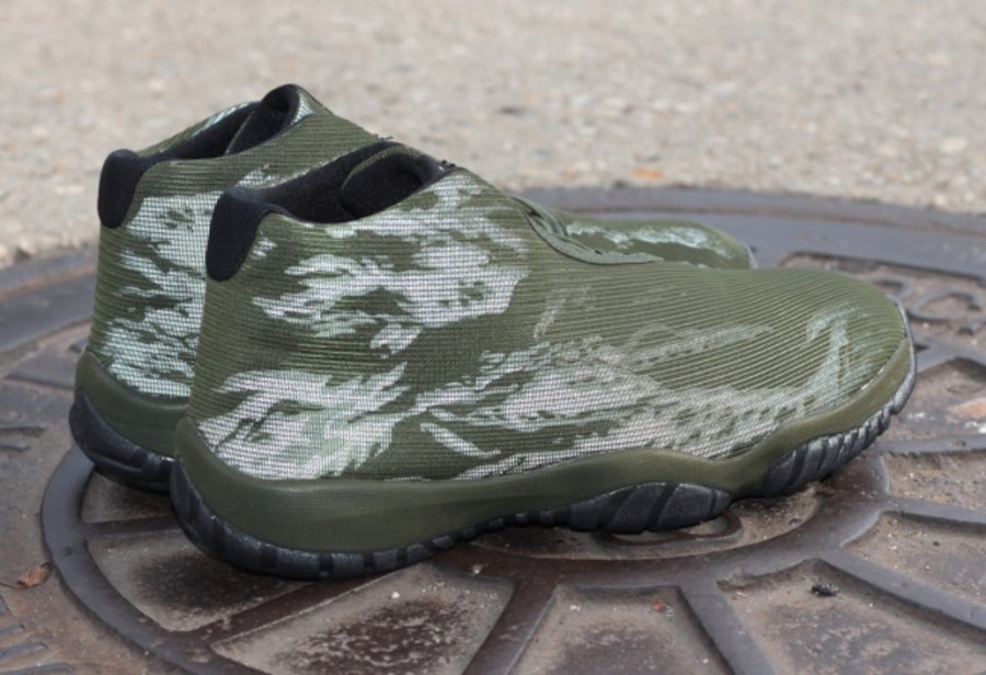 Jordan Future 再推新版本,此次全新绿色虎纹迷彩上身。军绿色鞋身搭配同色调内衬以及大底的黑色,反光效果鞋面附有独特虎纹迷彩装饰,再以金色的Jumpman logo刺绣以及鞋带头装饰点缀,整体风格颇为特别。这款Jordan Future 将于近日在各大指定店铺上市,货号:656503-301,售价:150美元。