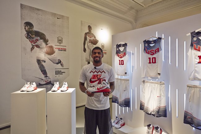 Kyrie Irving,克利夫兰骑士队的当家球星,当然这是在勒布朗詹姆斯重返家乡球队之前。毫无疑问,在众多Nike的签约球星里,Kyrie Irving绝对是“小字辈”。但这个来自杜克大学的篮球天才自踏入NBA赛场之后,一直在进步,他试图告诉别人,他将是联盟里最好的控球后卫,我们有理由相信LBJ的加盟能让Kyrie Irving在球技和球商上进一步提高、向前辈靠拢。 目前Kyrie Irving正随美国“梦之队”参加在西班牙举行的FIBA男篮世界杯(美国队也已闯入了半决赛),我们可以看到在这次大赛上Kyrie Irving在美国队扮演着相当重要的角色,他“引领”着球队不断前行。 “Humble and Hungry”Kyrie Irving的座右铭能使他不断在比赛中充满动力,站在“游戏”排名前列的位置! Nike方面对于这样充满潜力且已实力不俗的球员展现出相当重视的态度,他们开始认可Kyrie Irving的“星味”和商业价值,之前我们已经看到了Kyrie Irving个人Logo的推出,这次这个美国队“第一”控卫忙里偷闲,在比赛训练间隙参加了在巴塞罗那举行的“Nike世界篮球节”活动,在活动上他展示了自己目前的战靴——Team USA 版的Hyperdunk 2014,同时在活动现场我们也能看到会场摆放着诸多回顾历史的Nike产品,当然也少不了最新释出的Air Jordan XX9和其他经典的Jordan产品作展示。 让我期待Kyrie Irving这颗明星的渐渐闪光,他的签名鞋应该离我们不远了!