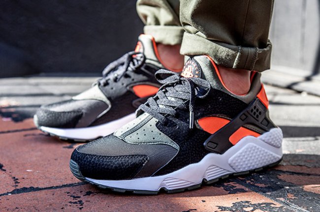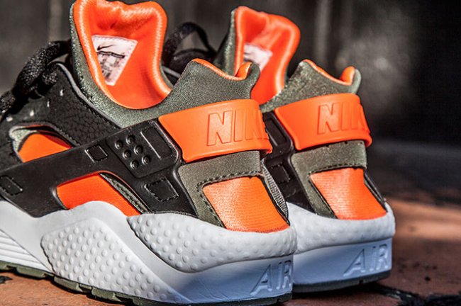 Nike Sportswear此次为人气鞋款Nike Air Huarache 推出全新配色,鞋款使用黑灰色鞋头与军绿色弹性内衬拼接整体鞋身,并搭配白色中底,醒目的橙色点缀在后跟TPU装饰、内衬及鞋面细节之上,军绿加橙色的整体造型也让人联想到与Nike 关系极好的著名潮牌Undefeated标志性配色。