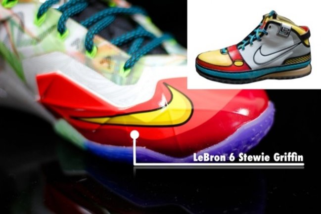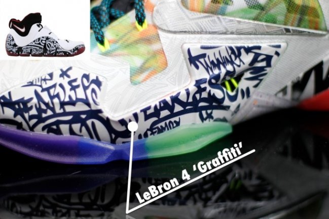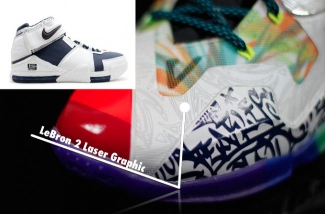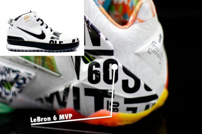 号称史上最强的 What The LeBron 球鞋,LeBron 11 "What The" 绝对是实至名归。和以往呈现当前系列多款元素的思路不同,LeBron 11 "What The" 完整的回顾了詹姆斯签名球鞋的历史,以詹皇的历史鞋款为灵感,借鉴了 8 种产品设计元素和 20 种图案与配色,引爆混搭风潮,将 28 种元素完美的呈现在了 LeBron 11 鞋身上。