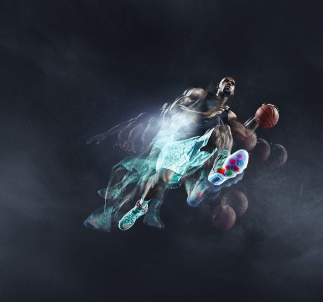 配色灵感来自于詹姆斯战斧式扣篮中蕴含的强大力量以及可以比拟直升机螺旋桨一般的速度和力量