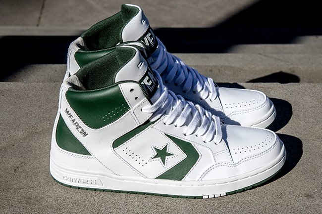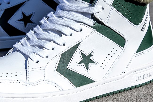 熟悉NBA的老球迷们,一定对上世纪80年代的黑白双煞对抗不会陌生。除了伯德与魔术师出色的球技之外,他们当时脚上穿着的Converse Weapon 也是给球迷们留下了深刻的印象。此次全新复刻的Converse CONS Weapon Mid 就推出白绿配色,白色皮革搭配绿白外底,绿色细节点缀在脚踝等处,简洁的白绿配色加上Weapon的经典造型,让人联想到了当年那个在球技与垃圾话领域有着超高造诣的大鸟伯德!这款Converse CONS Weapon Mid现已在澳洲上市,感兴趣的朋友不妨留意一下!