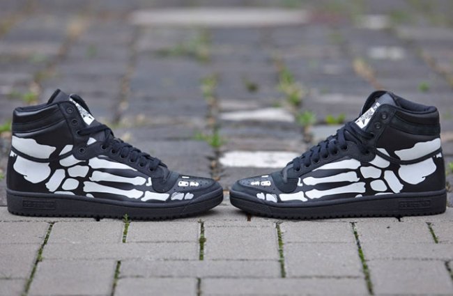 还记得 2009 年,邓肯在比赛中穿着的那双 adidas TS Commander 万圣节 PE 么?日前 adidas Originals 再度将这一黑白骷髅设计运用到了旗下 Top Ten Hi 鞋型之上,以此迎接下月万圣节的到来。