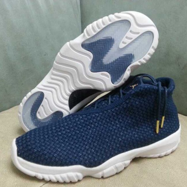 Jordan Brand已经推出了以Air Jordan 1以及Flight Flex Trainer两双鞋款组成的Derek Jeter系列向这位伟大球员和他的职业生涯致敬,而网上曝光的全新配色Jordan Future也会成为其中之一。鞋款整体色调与Jeter系列相似,暗海军蓝作为鞋身主色调搭配白色外底并附上透明橡胶装饰,细节点缀金属金色。