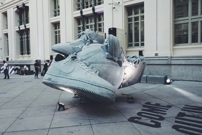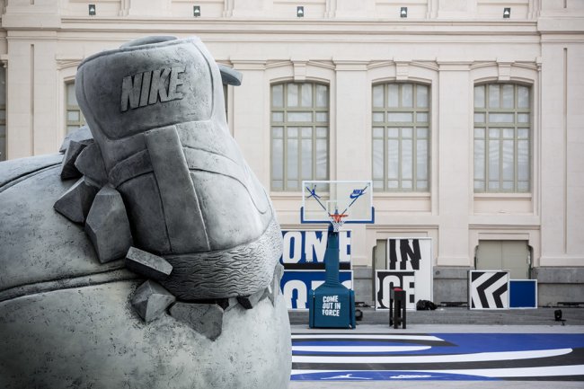 纽约艺术家Shane Griffin为Nike在西班牙马德里举办的Sneakerball嘉年华特别设计了一座概念雕塑! 据悉,这次特殊的创意设计,是由Shane Griffin和Nike设计师Colin Cornwell携手共同完成的,从建模到最终雕刻两位都倾注了大量心血。Nike方面的想法是,雕塑一定是有3D效果的,不但要在嘉年华作展示,还需能印刷在平面上作商业宣传,这对“作者”而言充满挑战。 最后呈现的基本轮廓是,整个雕塑形象由Nike旗下最经典的三款篮球鞋构成:一只Blazer,一只Air Force 1,三只Air Jordan 1 ,他们冲撞篮球嵌入其中,营造出“流行撞地球”的感觉,相信意在描绘Nike产品对于篮球运动的巨大影响力。 雕塑的收尾工作是“水泥灰”上色,没错,这个雕塑并不是由水泥或者石头制成!它是泡沫塑料制品,没错,泡沫塑料!一定没有发觉吧?非常神奇?两个“巧夺天工”的设计师用自己无限的“头脑风暴”为大家创造出了这样一个让人惊叹的作品,特别是在知道它的制作材质之后。如果大家能亲眼看到这座雕塑,一定会发出“哇”的声音,这也许是对它和它的“父亲们”最好的褒奖了。