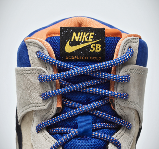 鞋身使用麂皮物料制作,选用谷物黄搭配黑色、蓝紫色以及橙色,细节点缀黄色,此款以经典Mowabb作为灵感、由Acapulco Gold联手Nike SB打造的全新联名SB Dunk High即将正式发售,货号313171-207,10月1日上架。