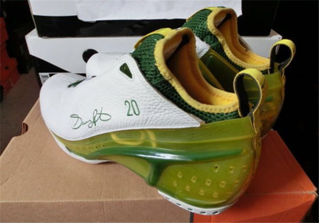 日前网络曝出了加里.佩顿另一双经典鞋款 Nike Zoom Ultraflight 的 PE 球鞋,鞋款整体以当年超音速队的主色调为基础,鞋面采用优质的荔枝皮打造,而鞋面外侧绣有佩顿的签名和其背号,标明了主人的身份。这双产于10多年前的鞋款,整体并无严重氧化和粉化的情况存在。不知Nike后期是否会将此经典鞋款加入到复刻的大军中来。