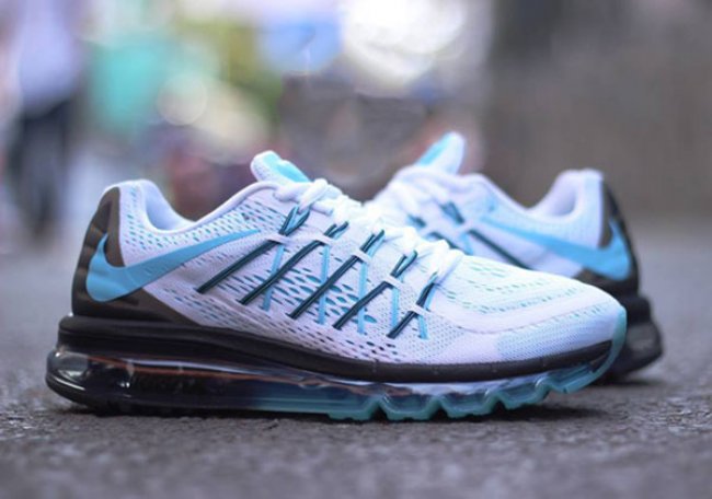 Nike Air Max 家族的全新成员Nike Air Max 2015 再度现身,此次曝光全新白蓝黑配色,白色工程网面鞋面下呈现蓝色鞋身,全掌Air Max中底则以蓝黑效果制作。清新的蓝色细节点缀其中,整体简洁而清新。
