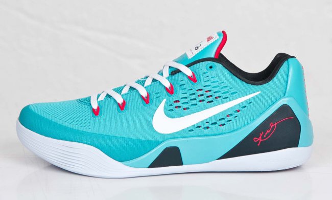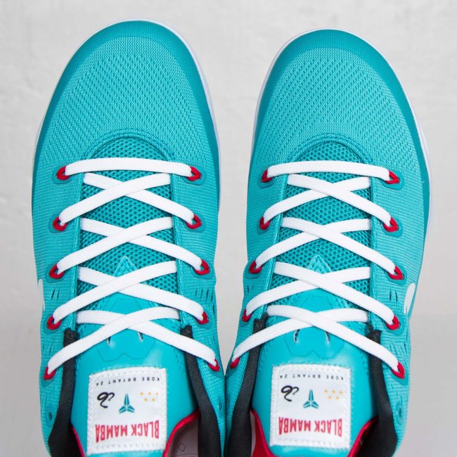 醒目的湖蓝色工程网面鞋身搭配白色外底与黑色细节,鞋舌内衬、动态飞线及鞋垫则使用醒目的红色点缀,鞋舌上的特殊刺绣细节令鞋款充满了特色。蓝、白、黑三色组成的整体色调,则让人想到了近两年Nike推出的N7系列。这款清新的Nike Kobe 9 EM现已上市,货号:646701-316,售价: 1399RMB。