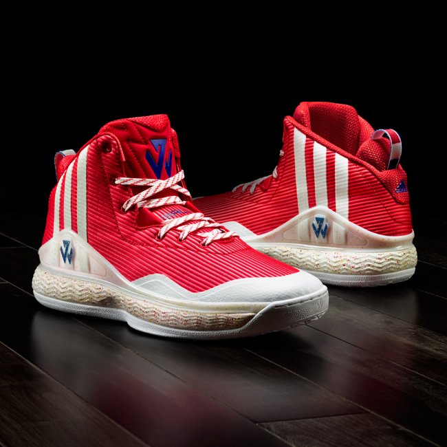 继九月正式发布后,adidas Basketball再度呈上两双客场配色J Wall 1,这两双鞋款都将于2014-15赛季出现在John Wall的脚上。两款J Wall 1均以红色作为鞋身主色调,“客场”搭配海军蓝色以及金色,10月31日上架,“备选客场”则搭配金色以及少许海军蓝细节,12月5日发售。