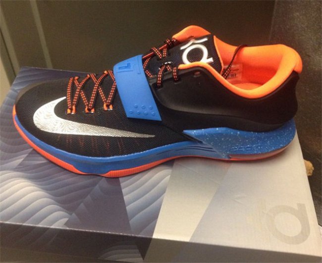近日Nike为Nike KD 7推出了一款全新的配色,此番选用了雷霆队客场配色搭载于球鞋之上。黑色为主色调贯穿鞋身,银色Swoosh和杜兰特的Logo作为修饰点缀,蓝色中底及绑带加持,最后以橙色内衬及大底呈现,鞋款整体有着浓郁的“雷霆”之风。据悉该鞋款将于10月31日全面市售,货号为653996-004,喜欢的朋友不妨关注一下啦。