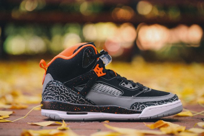 为迎接万圣节的到来,Jordan Brand特别打造节日主题配色GS专属Jordan Spiz’ike。选择黑色搭配灰色作为鞋身主色调呈现夜晚感觉,细节点缀橙色突出南瓜灯的元素。此款将于10月22日正式上架。
