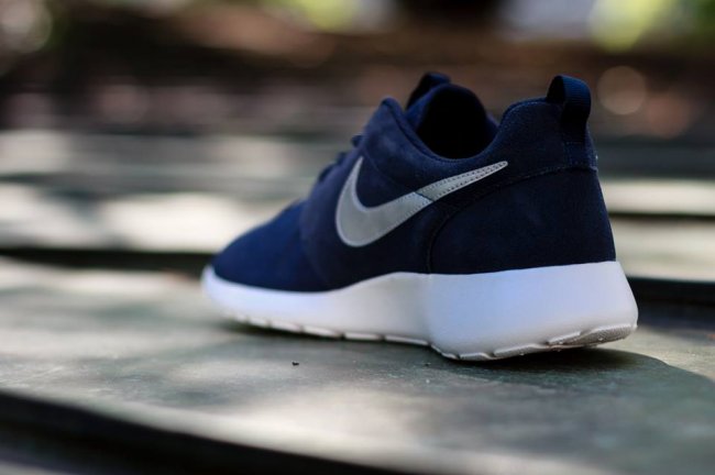 Nike Roshe Run将在这个秋天大推绒面革主题系列,继之前曝光的白灰与棕色之外,还有一款海军蓝配色即将上市。海军蓝色的绒面革与麂皮拼接组成鞋身,白色中底与银色Swoosh点缀其中,整体十分简洁。这双Nike Roshe Run 海军蓝绒面革现已正式上市。