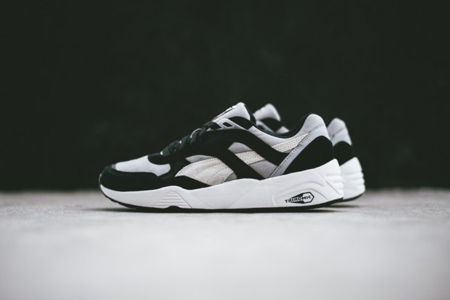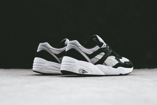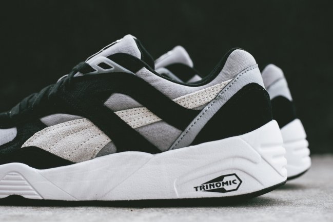 黑白灰是设计师永远最喜欢的三大色调,而在此次Puma Trinomic R698全新 “Quarry Grey”配色 之上,设计师更是将黑白灰色调使用到了极致。浅灰色织物鞋面搭配灰色与黑色的麂皮细节,再辅以白色中底令鞋款整体简洁而充满质感。