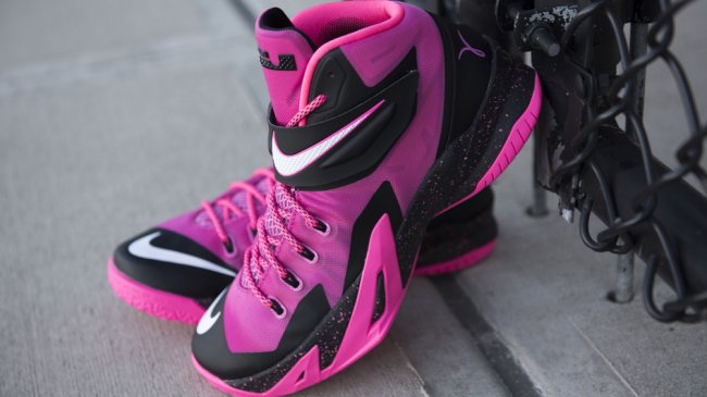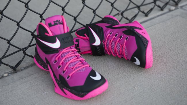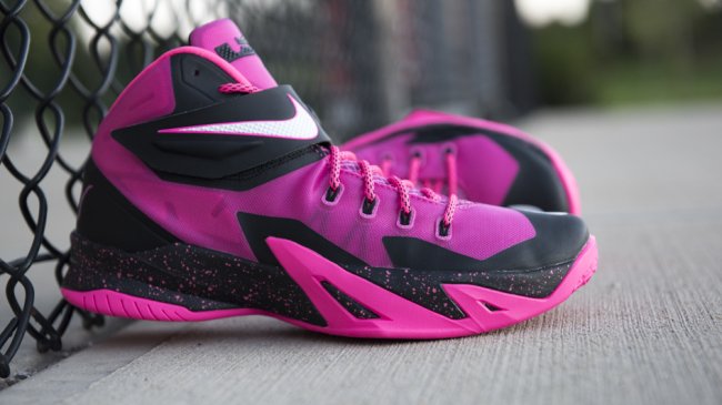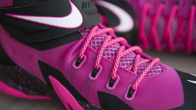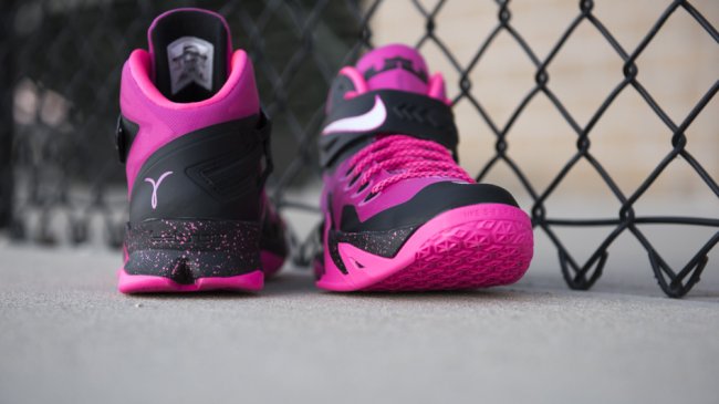 与往年一样,Nike将在防患乳腺癌月(10月)推出大量Kay Yow主题的特别版鞋款,其中就包括这双曝光许久的Nike Zoom Soldier 8”Kay Yow”。醒目的粉红妆点Hyperfuse鞋身与外底,黑色中底上辅以粉红色泼墨细节,标志性的Kay Yow 丝带Logo点缀后跟,整体拥有极强的视觉冲击感。