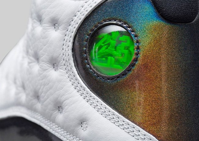 这双全新配色的Air Jordan 13整体以白黑灰为主体,加以蓝色细节点缀,而鞋身上特殊的材质在光线照耀下显现出彩虹般的质感使得球鞋整体都得到了提升。自曝光以来就深受鞋迷关注的这双球鞋,将于10月25日(星期六)发售,喜欢的朋友这周要准备好自己的钱包了。