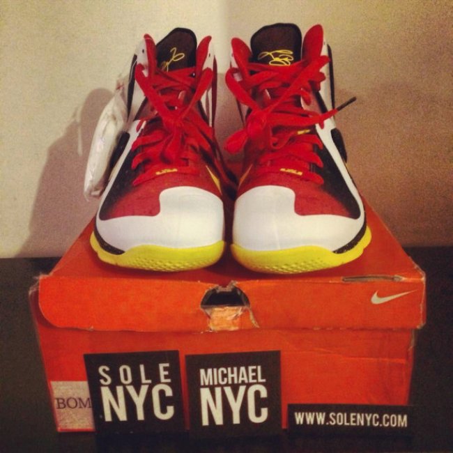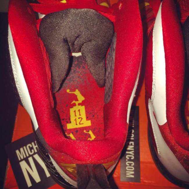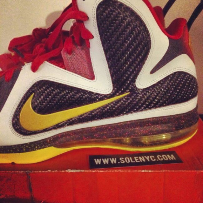眼前这款颇为熟悉的MVP别注LeBron 9乍看之下会以为是极限量发售的套装鞋款之一,但若仔细观察会发现,中底是为不同于市售版本的黑色,后跟则以更具质感的金色调呈现。此双Nike LeBron 9 MVP实际上是备选样品,较于套装版本更为罕有。