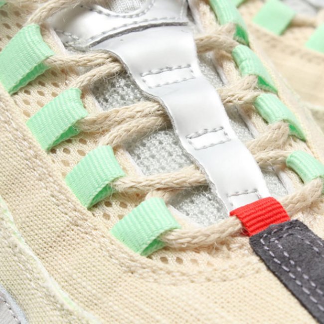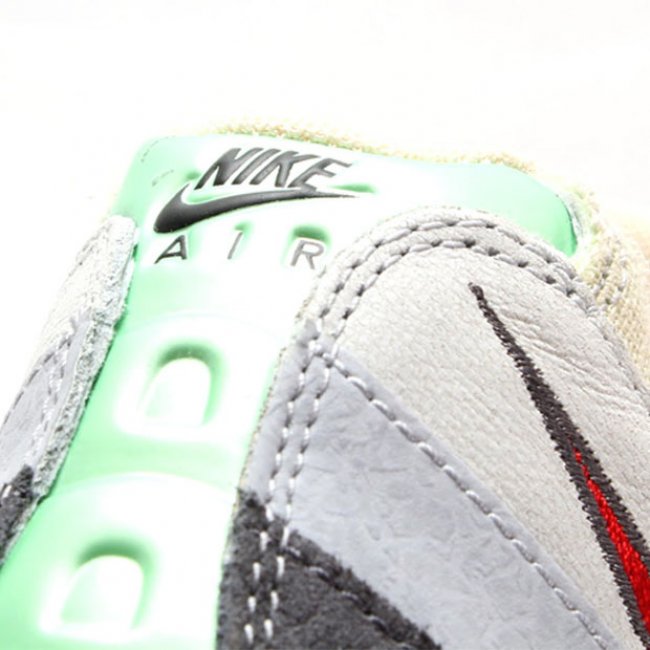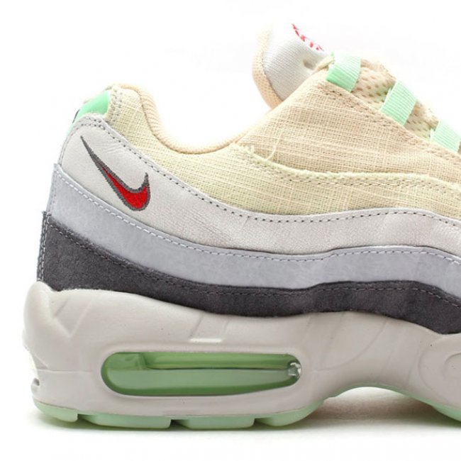 临近万圣节,节日别注鞋款相继发布,眼前这款带有特别细节设计的全新Nike Air Max 95 QS也将正式发售。帆白色麻质织物搭配淡灰色爆裂纹皮革以及深灰色麂皮物料制作鞋身,配以薄荷绿色以及红色点缀,鞋舌刺绣带有血丝的眼球图案,大底红色部分则如同南瓜灯一般诡异。