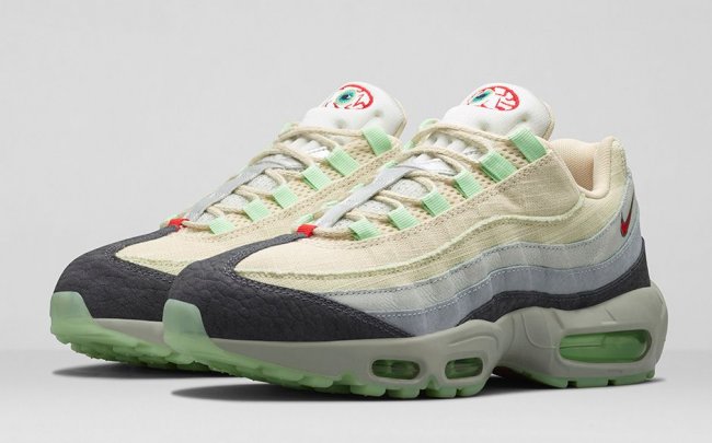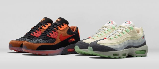 万圣节临近,Nike Sportswear适时发布全新节日限定Air Max系列,包含Air Max 95以及Air Max 90两双鞋款。Air Max 95(货号717599-100)以解剖学为灵感,选用如同裹尸布一般的帆白色织物搭配灰色纹理麂皮,配上淡绿色以及红色,鞋舌附有眼球刺绣,将万圣节的诡异气氛表现得淋漓尽致。Air Max 90(717942-006)的设计则更接近节日传统,选用不同质感的物料以黑色以及橙色的搭配设计,表现出黑夜以及南瓜灯的感觉。此系列将于10月30日正式发售。