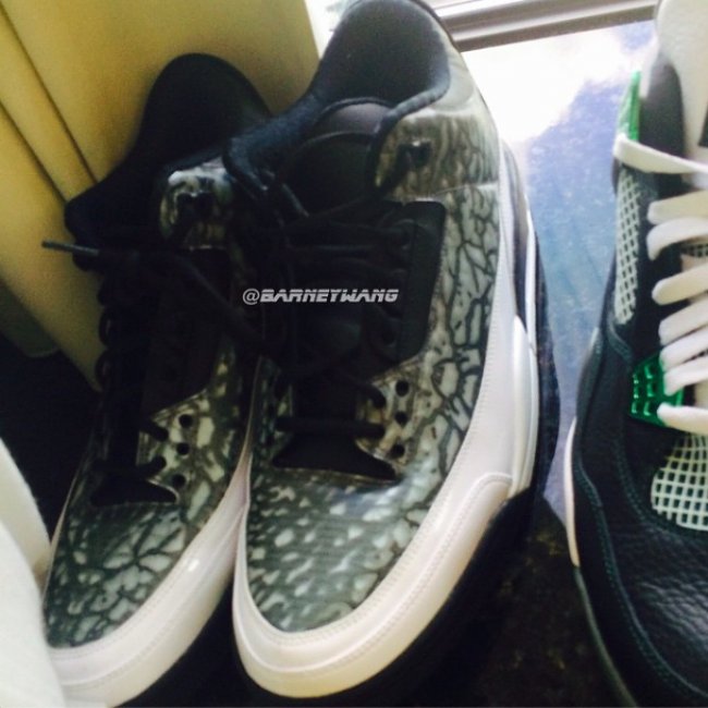 如果看过Nicki Minaj的MV《Anaconda》,那你或许会对Drake的客串有些印象,而此前也曾有过Drake在MV中着用的疑似全新专属Air Jordan 3的报道。如今网上再度曝光此双特别鞋款,实物呈现更为清晰,暗色调鞋身搭配白色漆皮挡泥板,鞋身爆裂纹材质的质感颇为特别,风格如同Nicki Minaj的歌曲名字一般。