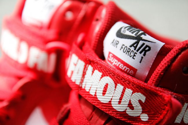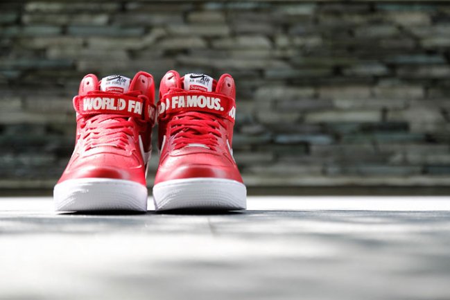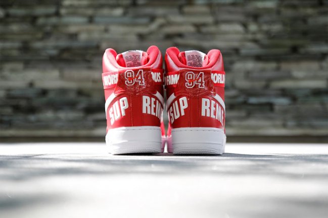 由美国传奇滑板品牌 Supreme 本季联手 Nike 推出的 Air Force 1 合作系列已于今日起正式开售,该系列也是为了庆祝 Supreme 诞生 20 周年的重要时刻而倾力打造。此番我们借着 Hypebeast 的镜头,一起来细细品味下该系列中的一款红色版本。延续了 Air Force 1 Hi 经典的线条,设计师采用红色皮革打造鞋身主体,并分别在不同位置注入白色的 Swoosh 、Supreme 、World Famous 以及 94 等字样,以此来突出 20 周年的特殊主题! Supreme 与 AF1 这两大街头经典的组合,是否令各位潮流爱好者血脉喷张?