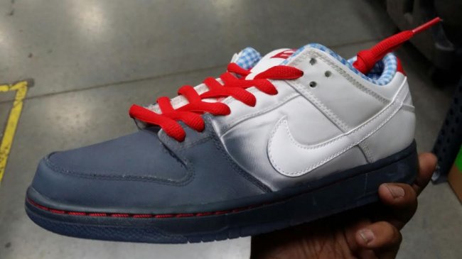 一款疑似以《绿野仙踪》中桃乐茜作为灵感设计的Nike SB Dunk Low曝出实物照,白灰色渐变鞋身搭配蓝白格纹内衬,风格如同桃乐茜的连衣裙一般,红色点缀则像她的红色皮鞋一样醒目。暂无此款的市售信息。