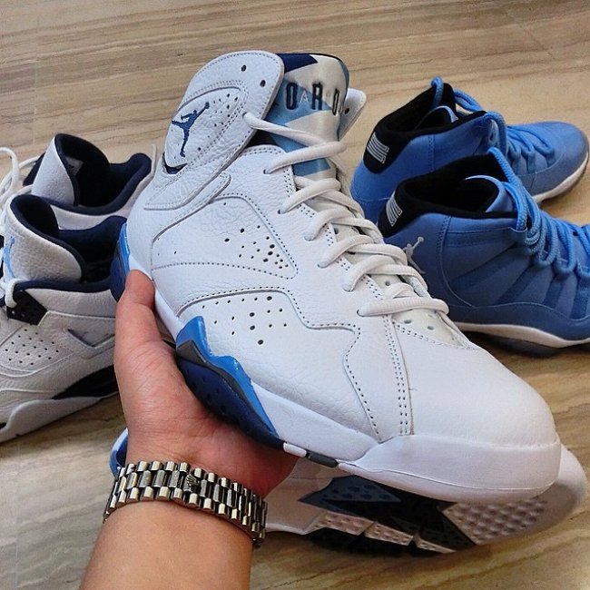 带来法国蓝配色 Air Jordan 7 “French Blue” 的更多清晰图片。将在 2015 年复刻回归,作为 Remastered 系列的一员,大家对于它的期待值也颇为不同。 货号为 304775-107,采用白色鞋身点缀深浅蓝细节,层次感明显,整体清爽而亮点十足,将于 2015 年 1 月 24 日正式发售。 货号:304775-107 发售日期:2015 年 1 月 24 日