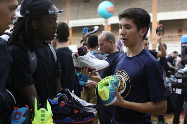 继本月华盛顿站之后,日前美国著名球鞋交易展示集会来到了“风城”芝加哥,为当地球鞋爱好者带来了一场饕餮盛宴。作为芝加哥公牛队的主地,各色的 Air Jordan 鞋款绝对是现场当仁不让的主角,现在就让我们通过图片来回顾下这场球鞋大会吧。