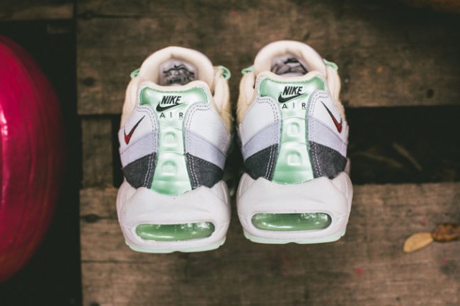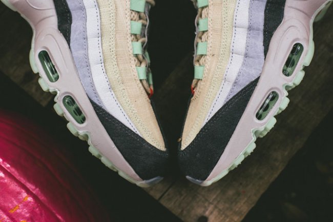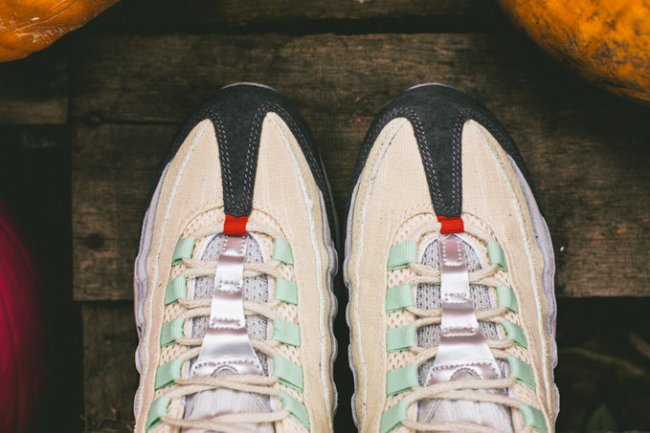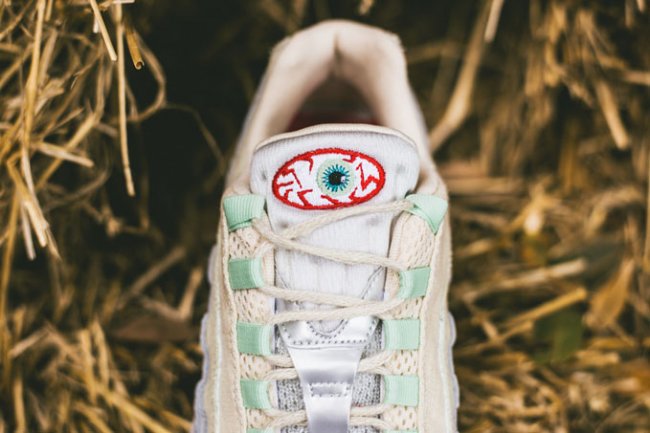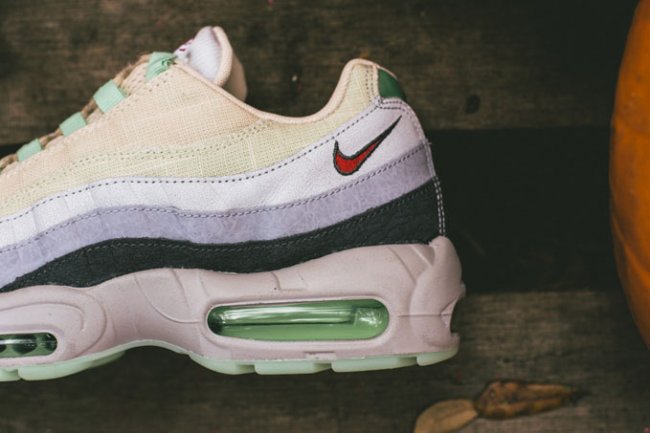 西方万圣节本周末来临,Nike Sporswear 日前推出了一组 Air Max 万圣节系列。系列包含了一双 Air Max 90 以及一双 Air Max 95 。其中这款 Air Max 95 的设计灵感源自于木乃伊,设计师选用麻质布料搭配灰色皮革打造鞋身,辅以薄荷绿色以及血红色细节,最后鞋舌上的血丝眼球十分凸显主题。鞋款将于明日起于指定店铺发售,喜欢的朋友千万不要错过了!