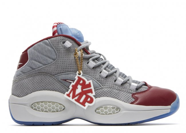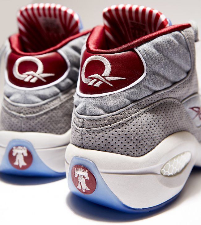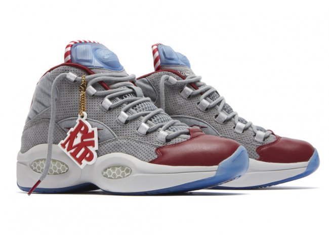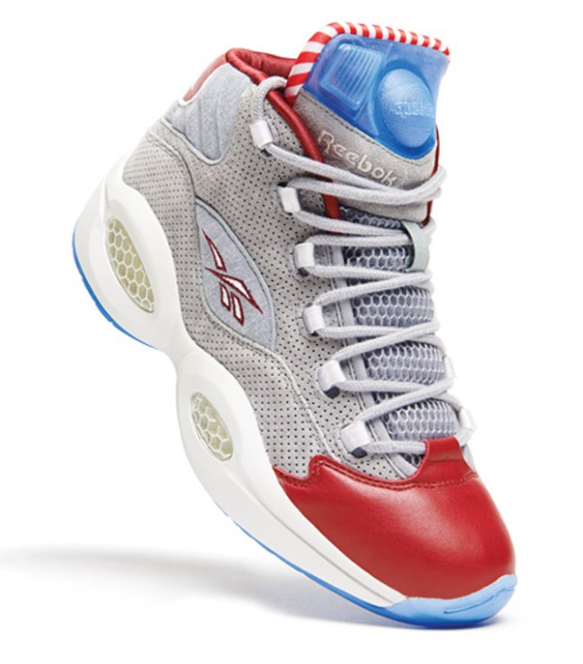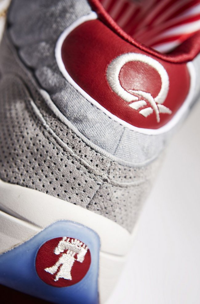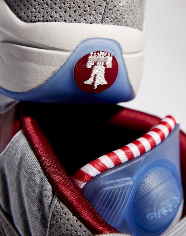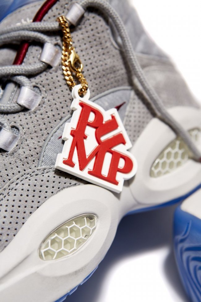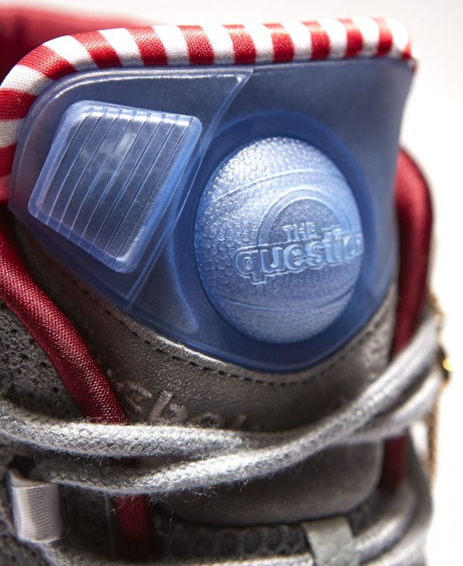 费城球鞋店铺VILLA将独家发售一款特别球鞋以庆祝店铺的25周年,此双特别球鞋也与费城有着密切联系,那就是带有Pump功能的Question。灰色孔眼麂皮搭配棉质以及网面织物制作鞋身,配上红色鞋头、内衬以及红白条纹鞋舌内衬,冰蓝色装饰于鞋舌Pump以及水晶大底。11月24日独家登陆VILLA。