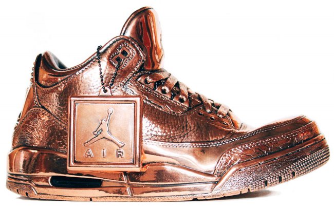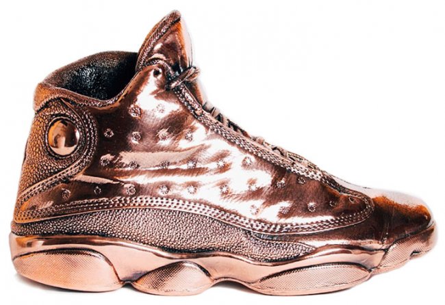 常会有人争论Air Jordan是不是球鞋艺术品,而今洛杉矶概念派艺术家Matthew Senna将Air Jordan真正转变为艺术品,分别打造了一对Air Jordan 3和13的铜塑。这两对铜塑将球鞋的细节表现得颇为逼真,褶皱部分更是透出古着感。现在这两对铜塑正在msenna.com出售中,每对售价$2,250USD。